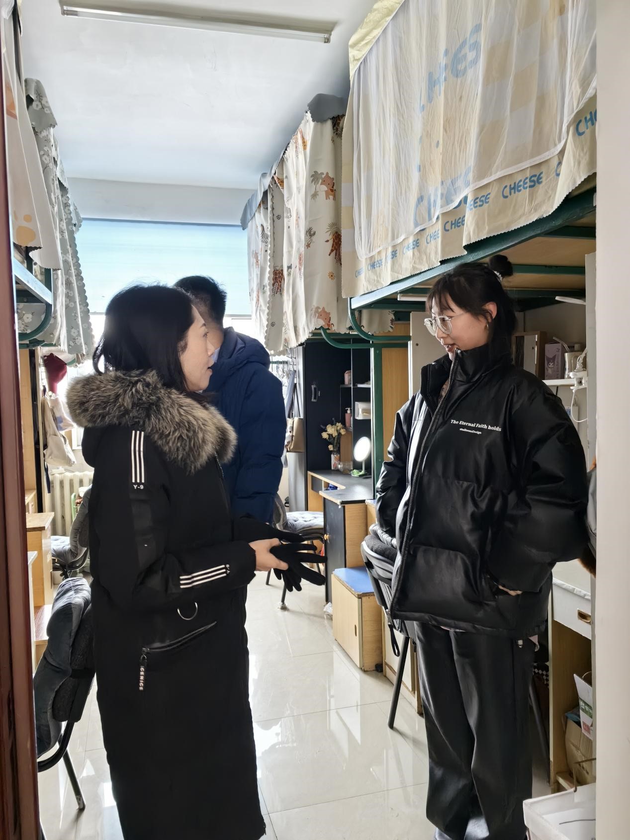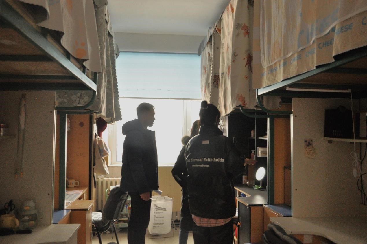 2024年2月28日上午,学院党委副书记马旭和研究生辅导员姜鹏走进研究生寝室了解研究生思想动态和学习生活情况,并开展安全卫生检查。在走访过程中,马旭书记对研究生的专业学习内容、目前的科研重点和学习节奏的把握情况一一进行了了解。同时,她耐心询问了同学们的日常生活状态,并叮嘱大家合理安排日常起居,为自己的学习生活创造良好的环境。此外,马书记还强调要注意用电安全,提醒同学们注意插排的使用,及时更换旧插排,做到“人走电断”等安全细节。